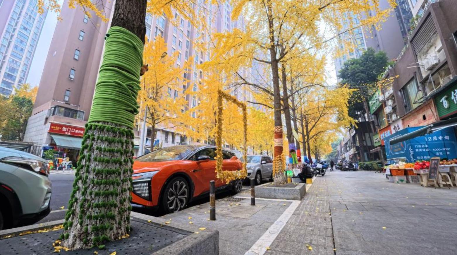 成都:銀杏“穿”彩衣 暖心編織點(diǎn)亮街頭