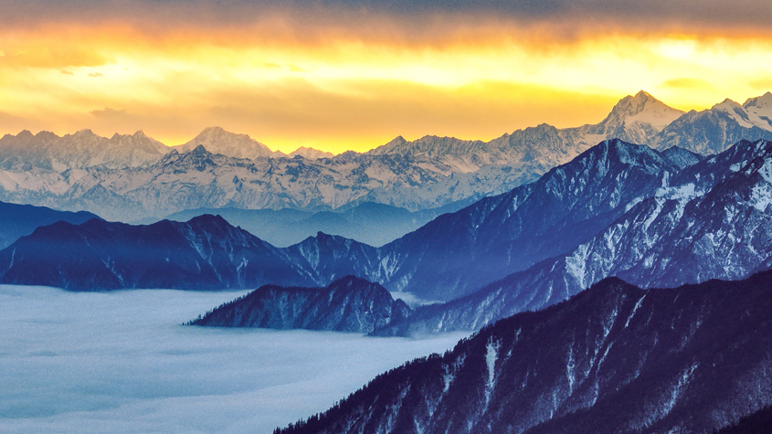 四川峨眉山降雪后迎晴好天氣